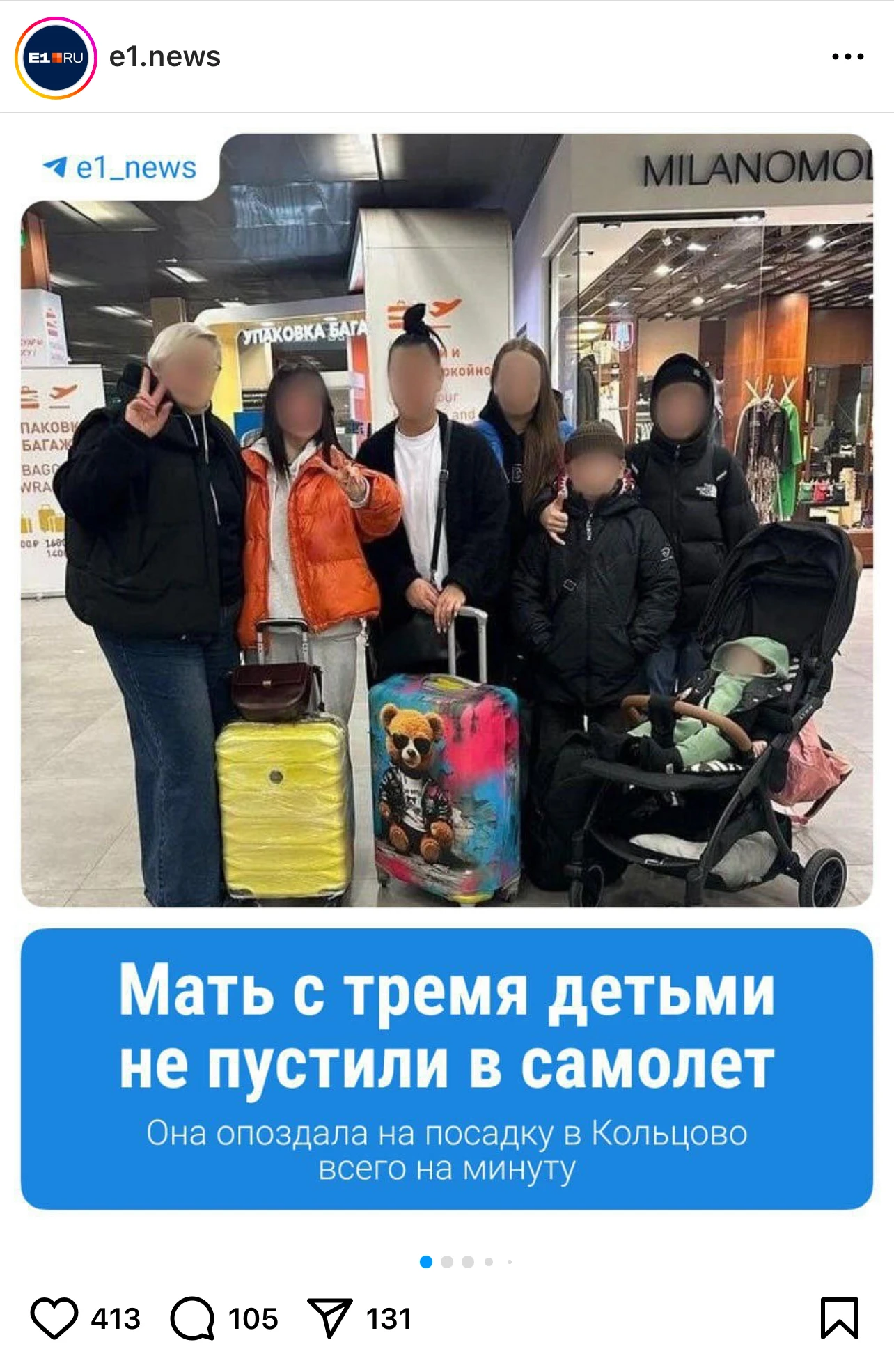 В Кольцово мать с тремя детьми не пустили на рейс «Победы» из-за минутного опоздания