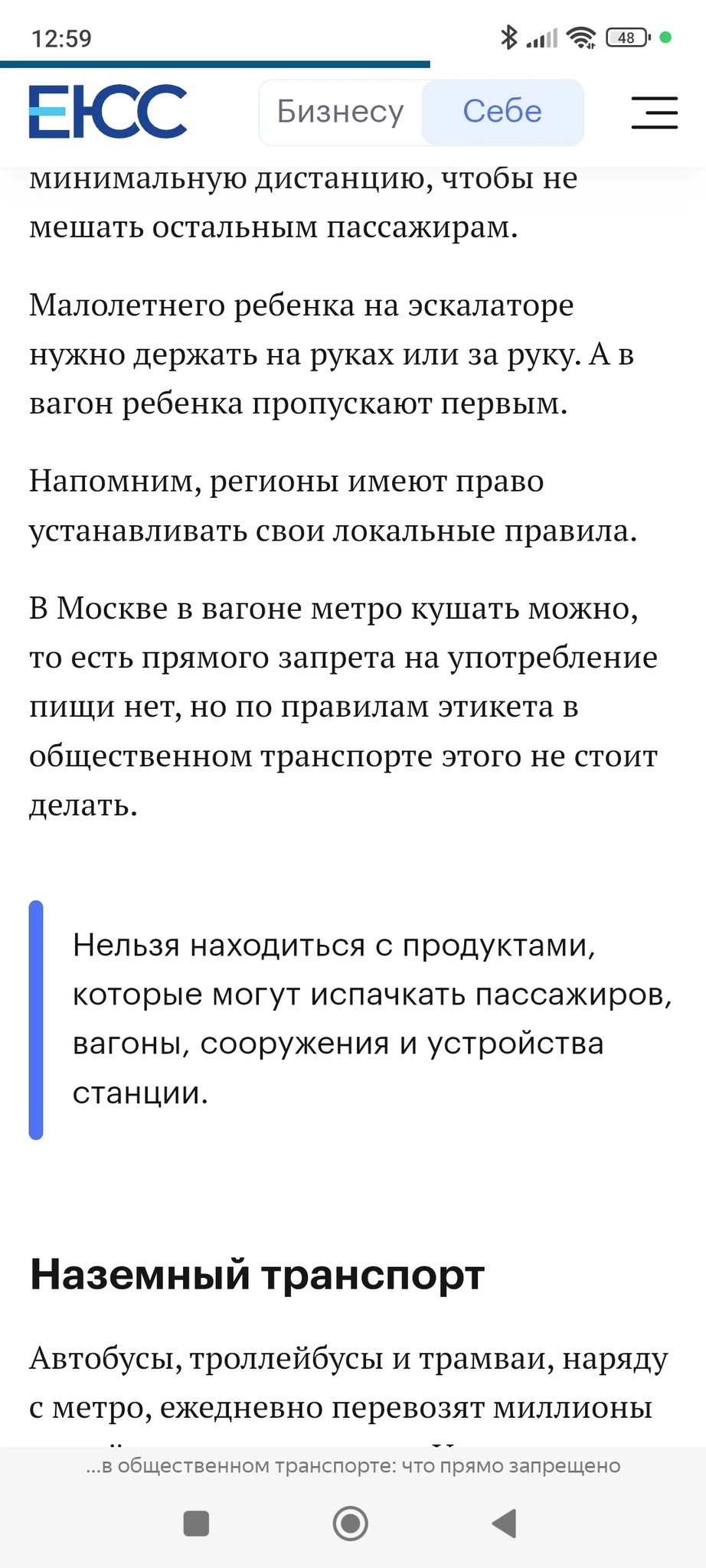 Кстати, я сейчас нашла в московских правилах разрешение пить б/а напитки. Ну и нет прямого запрета принимать пищу. Есть запрет на провоз пачкающих продуктов