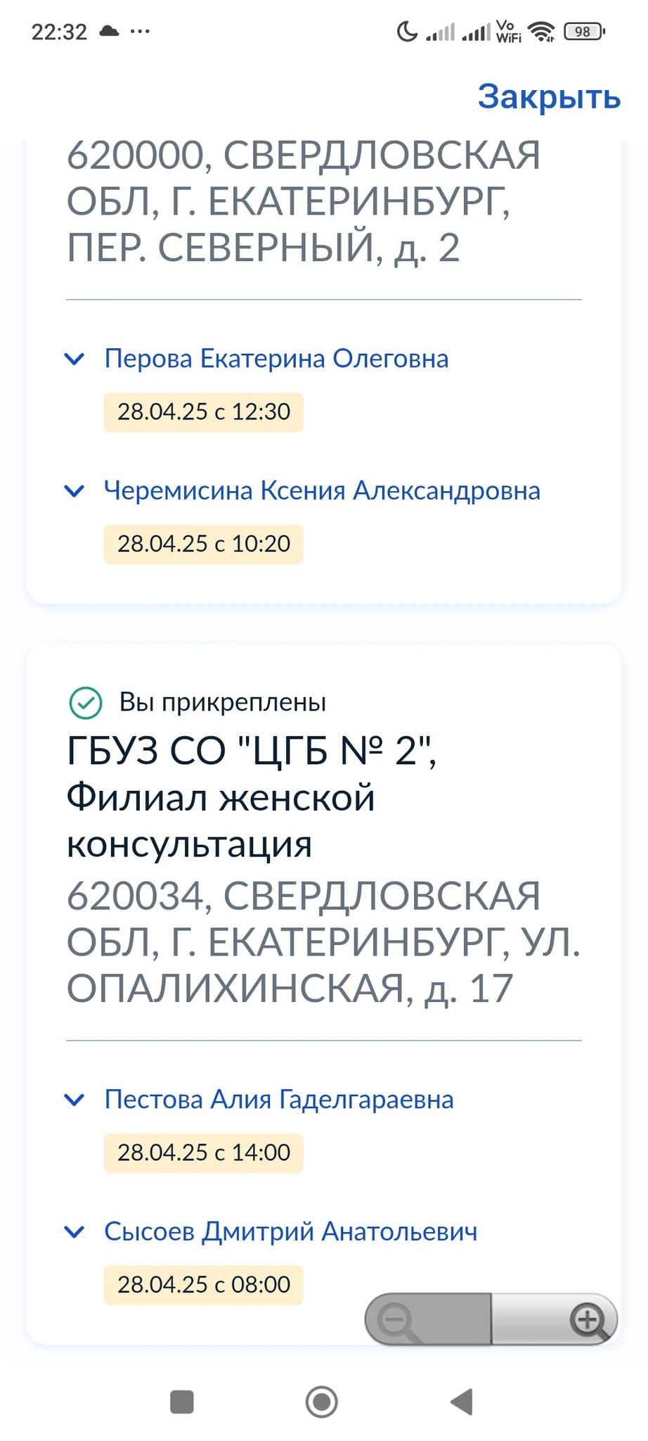 Женская консультация на Малышева и другой скрин на Сыромолотова