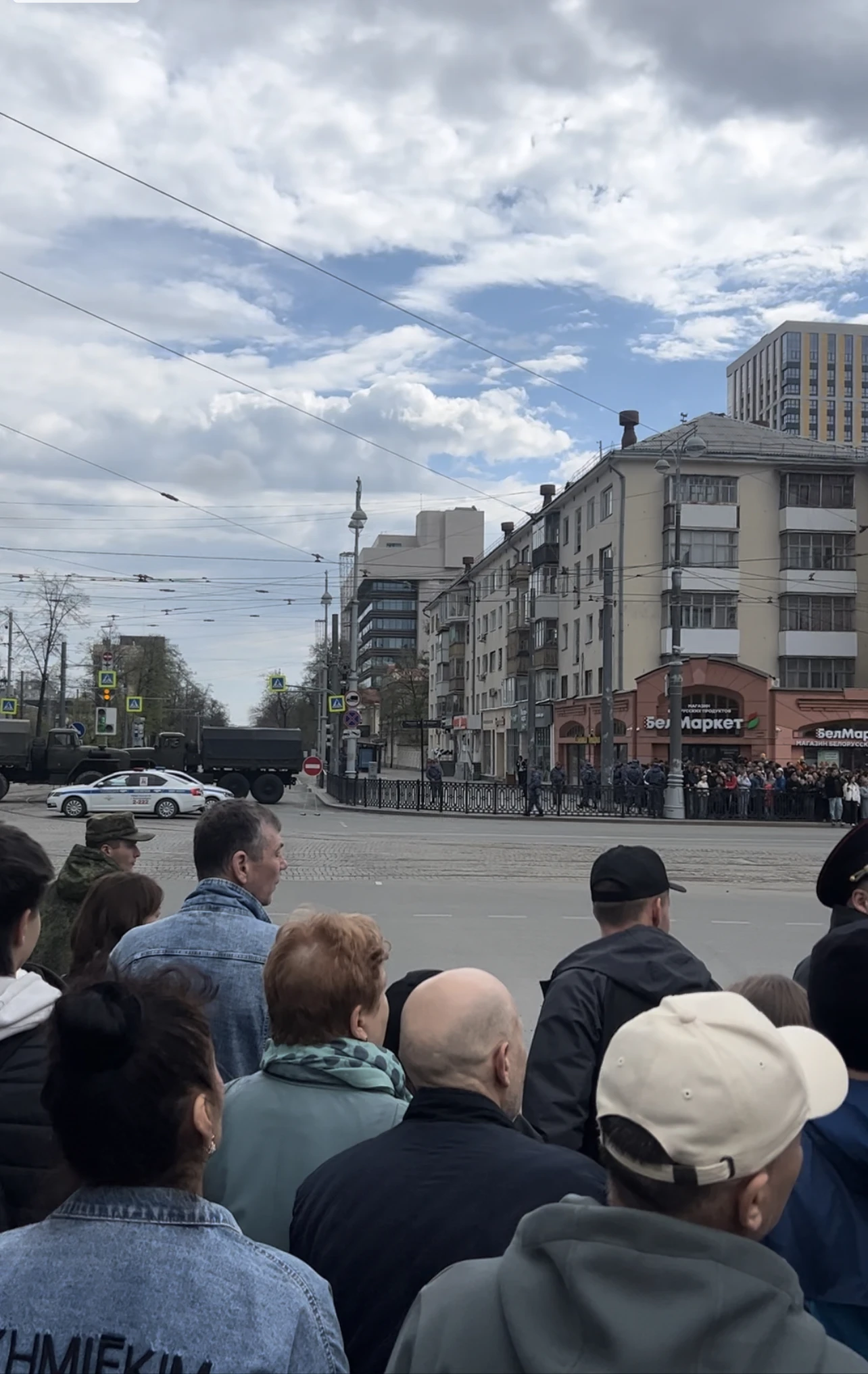 Но в прошлые года вот туда, постоять в центре вдоль центральных улиц, где уже идут парадным шагом, пускали по спец пропускам. Поэтому народу там стоит мало. Если бы пускали всех, как раньше, было бы намого больше.