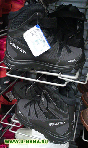 - Ботинки «Саломон» на гортексе, размеры 35-38, цена 3149 руб., и по 2800 руб., размеры 34-37.