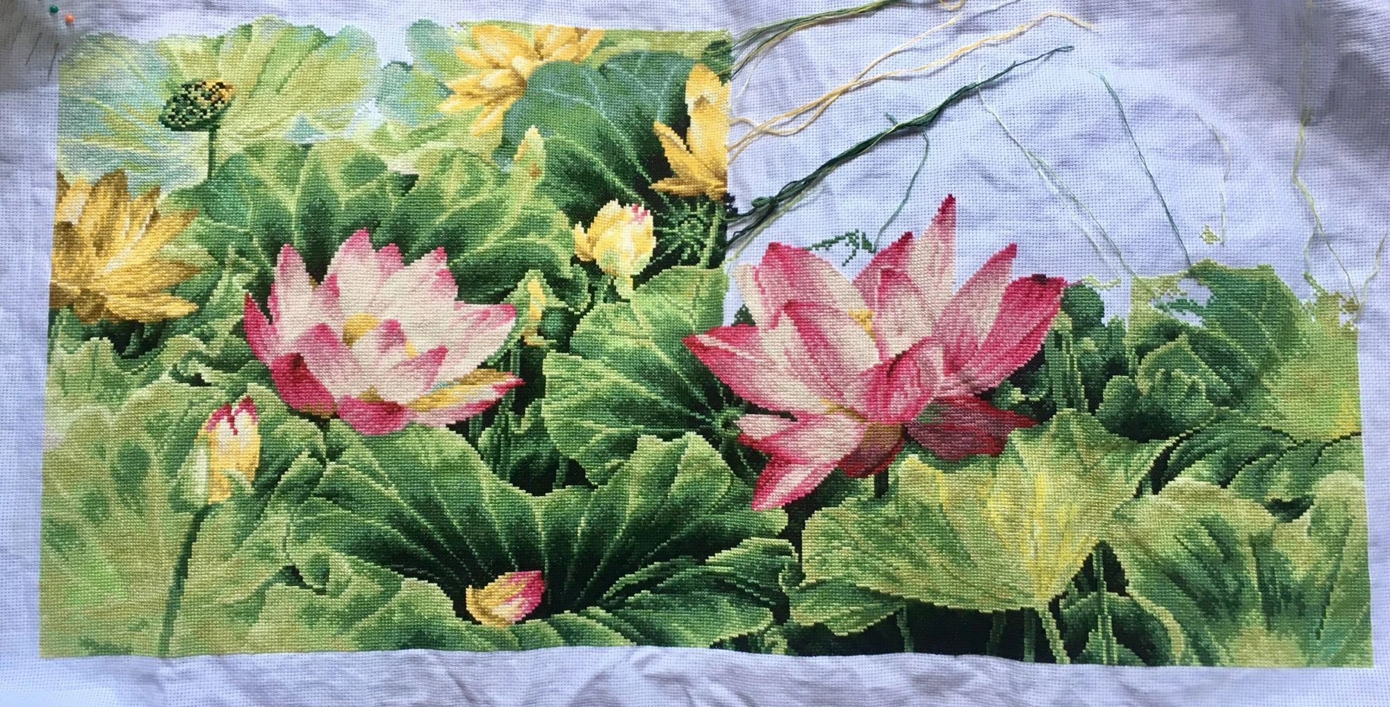 Это южнокорейская фирма Dome. Увы,фирмы походу уже нет, и наборов тоже не найти. (в сети всего 1-2 отшива есть). Так что по ключу DMC и немного своим подбором зелень меняла. В схеме пару листьев тоже иначе переделала.