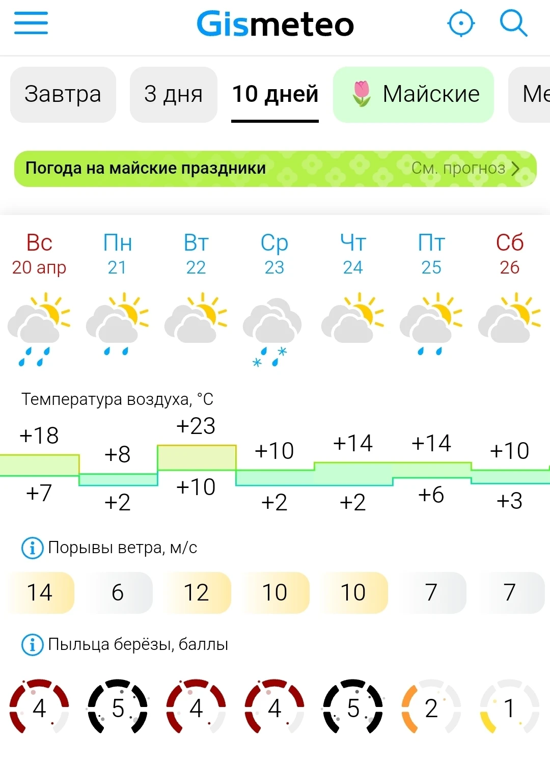 Посмотрела прогноз по березе. На Яндексе и Гисметео очень разные прогнозы. Чему верить?