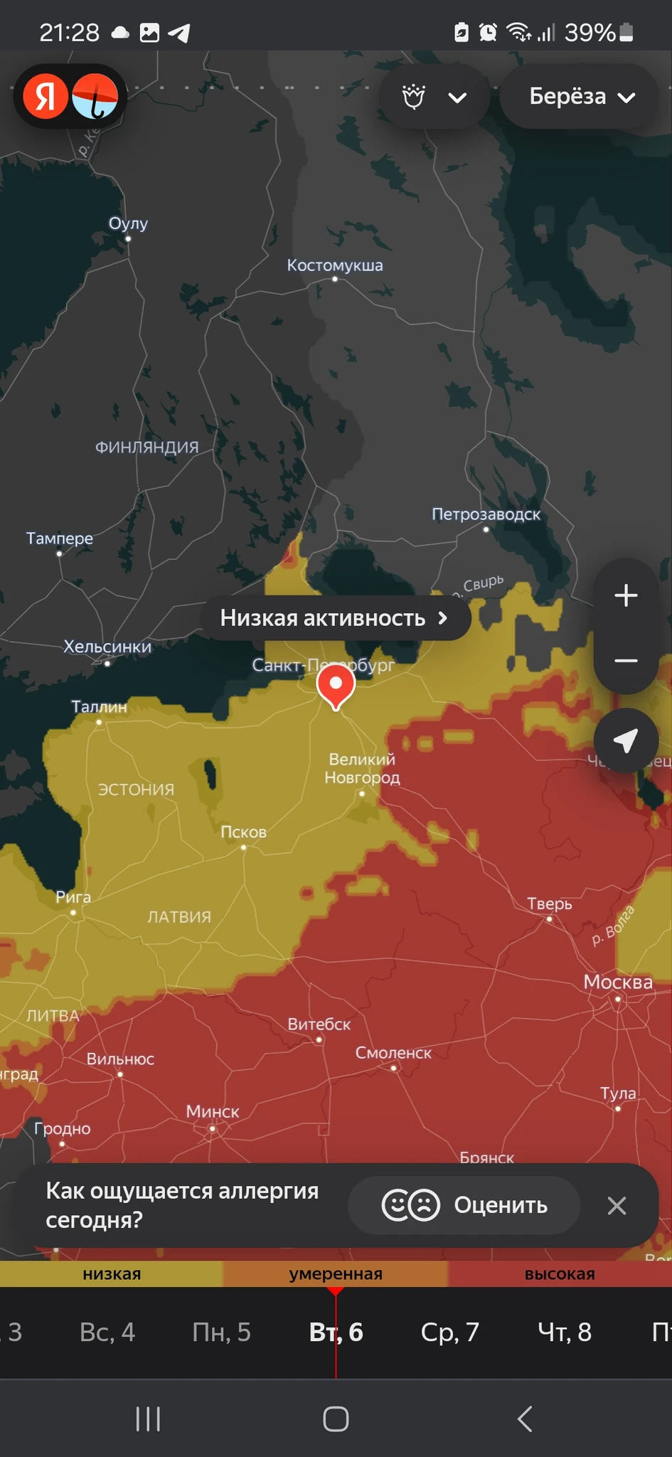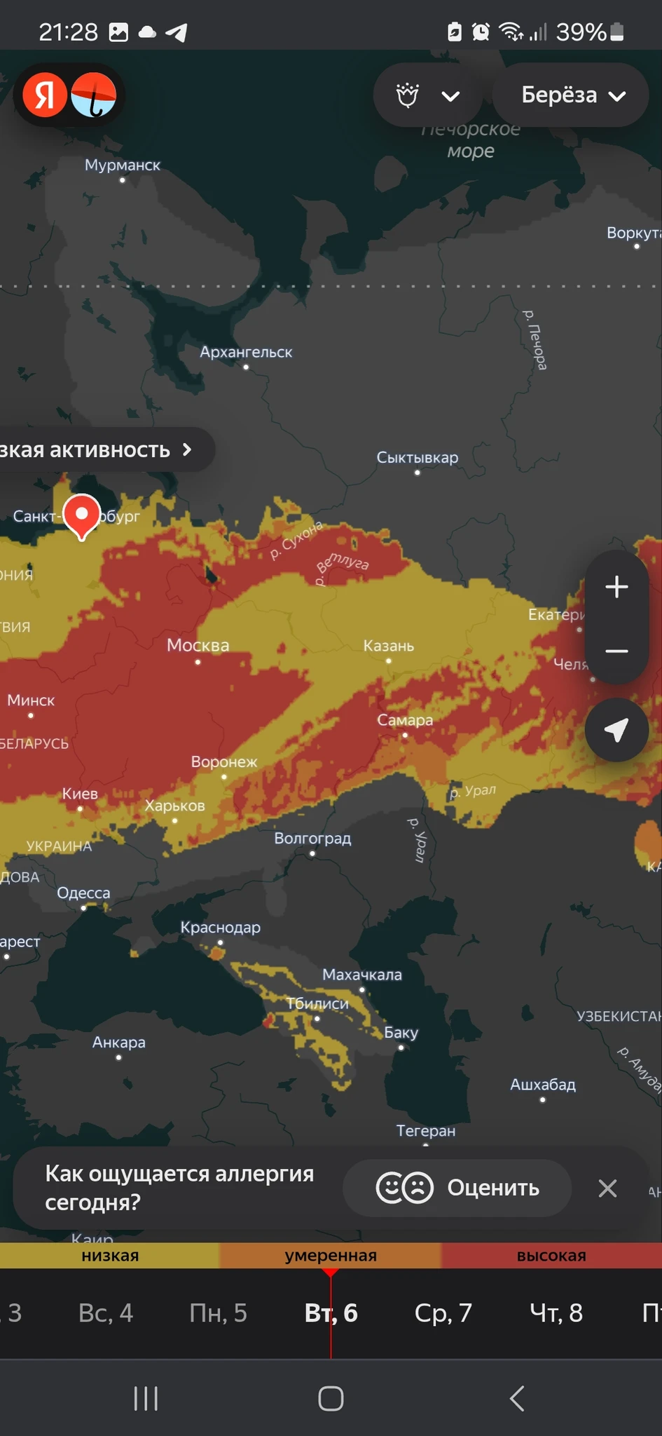 В Нижнем Новгороде всю прошлую неделю ежедневно протирала подоконники и белая одноразовая салфетка каждый раз становилась ярко желтой, капец, сколько пыльцы было. На этой неделе уже нет такого, сын уже спокойно ненадолго гулять выходит. В Мск тоже через несколько дней должно на спад пойти.