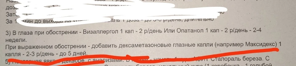 А в 2023 году, еще до АСИТ тоже сильно глаза краснели, аллерголог дала такие рекомендации: