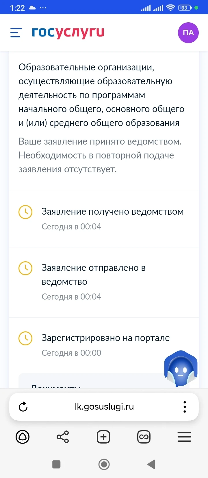 Так прекрасно автоматически ушло заявление. У нас первоочередное было. Удобно сделали