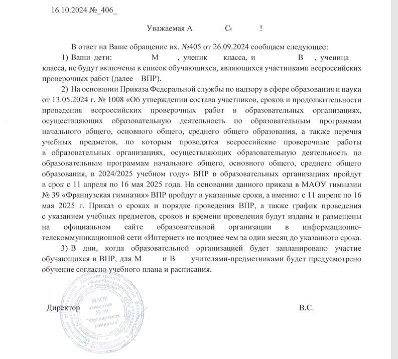 поняла, спасибо, статьи 95 и 97 прочитала. А вам все эти простыни зачем? Вы не хотите, чтобы ваши дети писали ВПР?