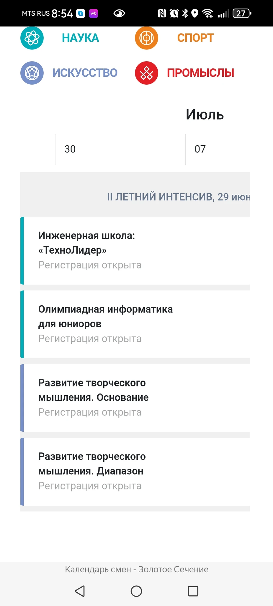 FoxyMama: Зарегистрировала на сайте сына, 10 лет. Хочу записать на интенсив Наука - курс лидерства, но не дает. В этом разделе предлагает только олимпиаду по информатике. И больше ничего на лето. Подскажите, что я делаю не так?
