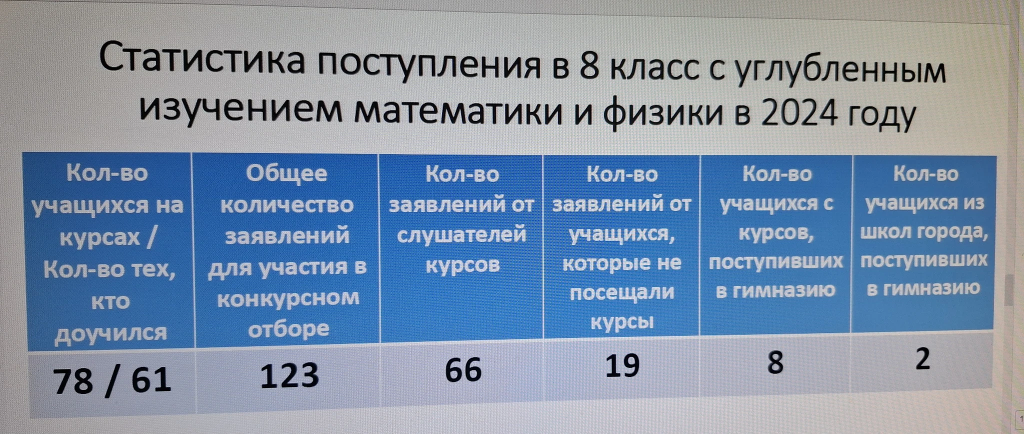 Я не думаю, что будет доступна какая-то статистика публично. Если только лично поинтересоваться. Обычно они её готовят к родительскому собранию в школе будущего гимназиста в сентябре. За прошлый год вроде есть презентация на сайте. Там немного, но прям пара человек из города, которые на курсы не ходили. Но они скорее всего ходили на другие курсы. Просто так, только на школьной программе не поступить. Реально, очень сложные задания.