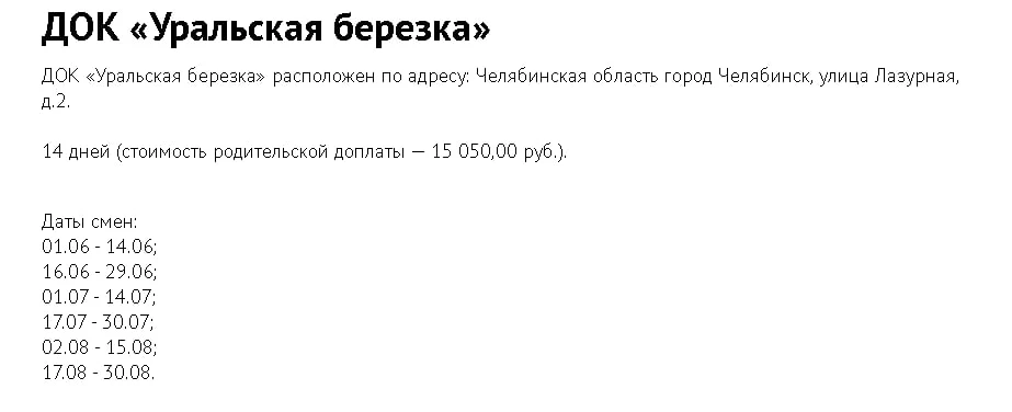 Вот такое висит на сайте академа, но когда падаешь в название, там только адрес и даты смен