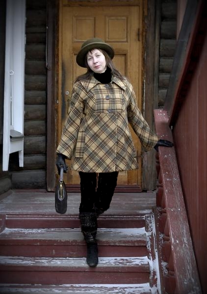 Мне понравилось ,что получилось,но есть одно но,как-то вы не можете увязать свой образ в целом,у вас все по отдельности все хорошо,пальто-ноги кста очень хороши,но вот смотрите вы в такой дамской шляпе и без юбки ну совсем никак,или уж шляпу снимите,или на низ что-нибудь наденьте.и шляпа не идёт вам че-то старит как-то,вам беретик шерстяной нужно и красиво платок сверху повязать,вообщем поиграть акссесуарами.А так понравилось.Да кстати необязательно все зелёно-болотного цвета надевать,разбавьте цвет пальто будет лучше.