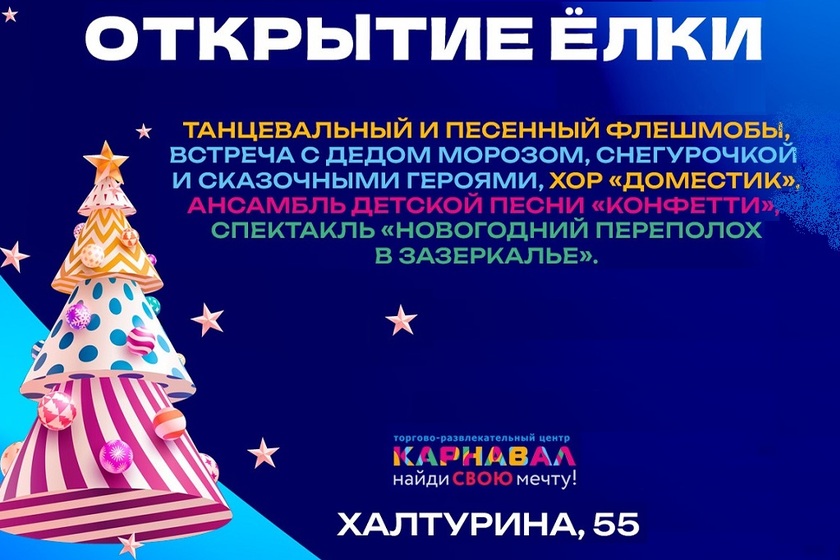 К нам едет Дед Мороз! 20 декабря 2025 в 14:00 приглашаем на праздничное открытие новогодней ёлки в ТРЦ «Карнавал»(ул. Халтурина, 55). Вас ждут: