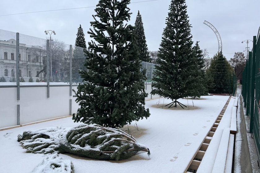 Открыть его должны 12 декабря 2025 года. А пока на площади установили центральную ёлку, монтируют ели по периметру, смонтирован павильон-раздевалка.