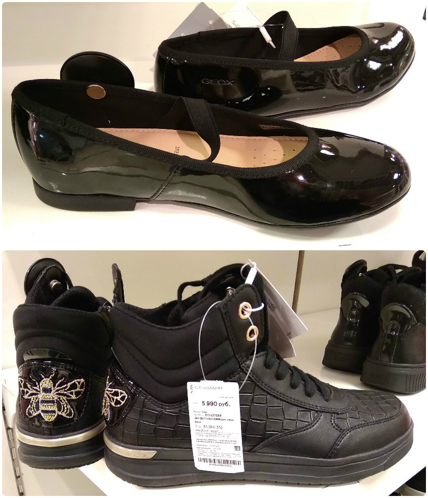 - Осенней обуви много, цены космические. Ботинки «Геокс» ~6000 руб. (28-39), школьные туфли «Геокс» - 3990 руб.