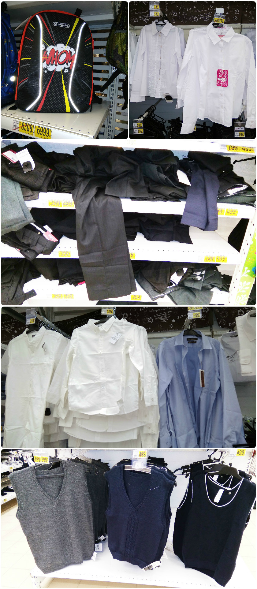 В АШАНЕ школьные жилеты и сорочки – 399 руб., брюки для мальчиков 128-164 - 299 руб., девичьи рубашки 499-599 руб. Один ранец «Хёрлиц» с наполнением со скидкой – 6999 руб.
