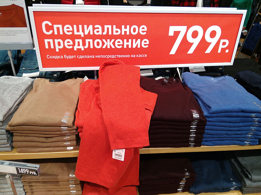 На этом месте бабушка уже превратилась в точку на горизонте – гневную точку, готовящуюся всю неделю рассказывать подружкам, как её пытались обдурить жалкими словами. А шопоголики остаются в UNIQLO в МЕГЕ и еле протискиваются в толпе, чтобы сделать какие-то фотографии в почти военных условиях.