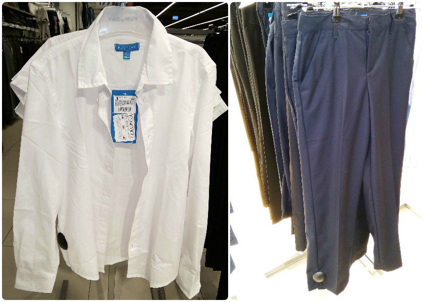 Акция в FUNDAY 3=2 на школьную форму. Её уже разобрали. Остались брюки для мальчиков от 799 руб., сорочки – 399 руб.