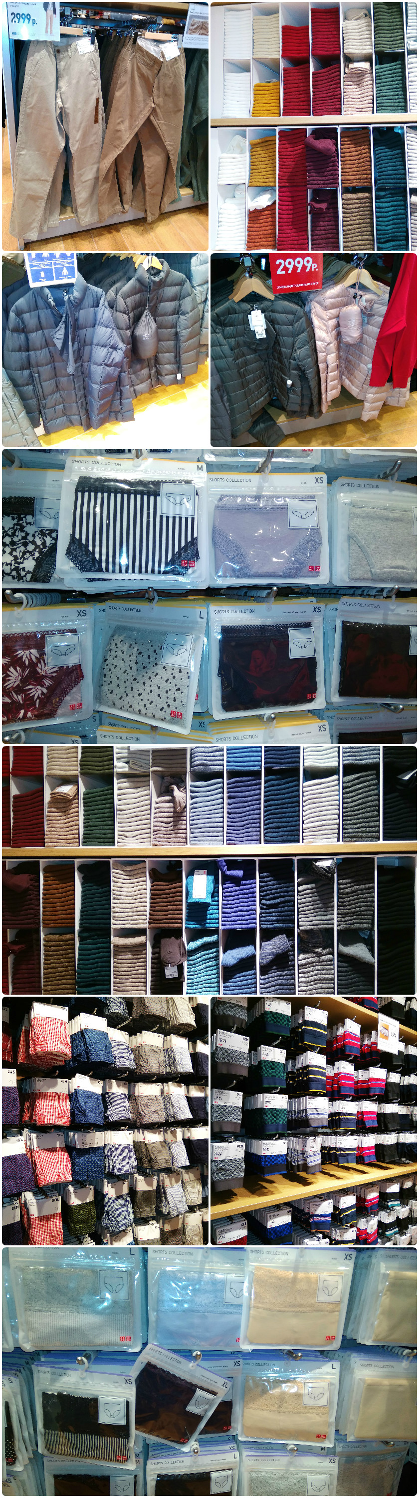 Знаете, в чём незримая фишка «Юникло» - «Стокманн» прекратил проводить выгодные «крейзи дни», и нам нечего стало, как говорят в форуме, «зафукивать». А тут новый повод для критиков системы «не носил, но осуждаю» и разгромных выступлений диванной ассамблеи ООН! Новый магазин даёт оглушительное количество поводов для сарказма. В нём есть, что поругать. И с удовольствием купить. Качество на первый взгляд прекрасное. Коллекции прицельно завезены для холодного сезона, отсюда вывод: если вы работаете в офисе или собираетесь в поход, стоит срочно зайти, пока действуют спец.цены. Больше всего именно офисной одежды - и различных вариаций "термо".