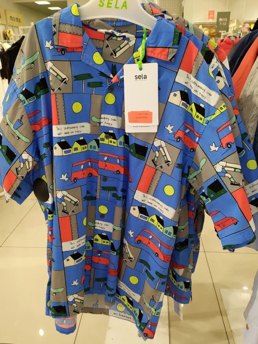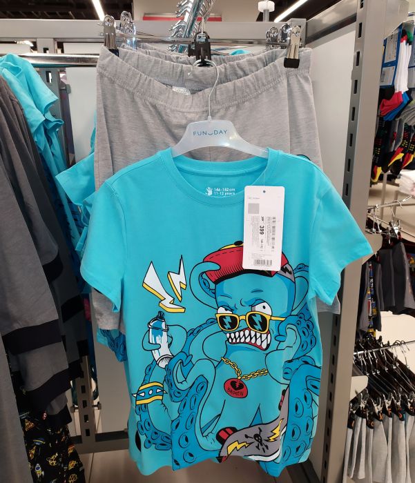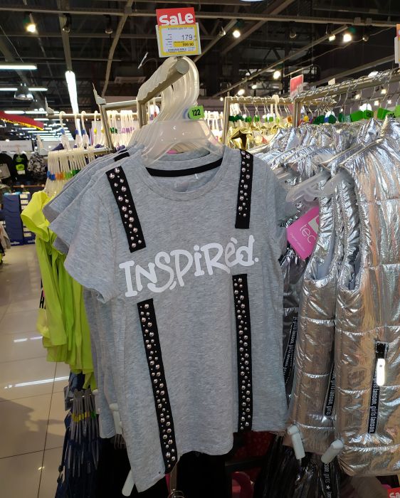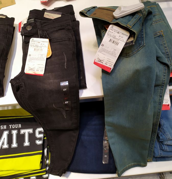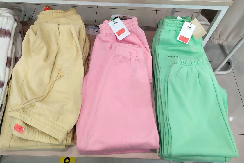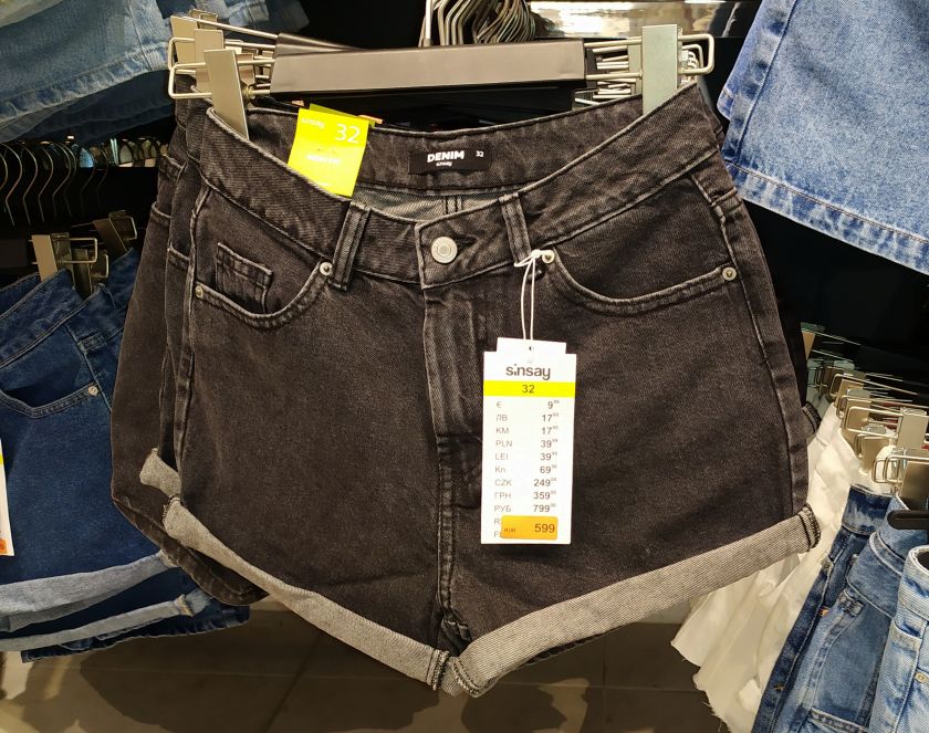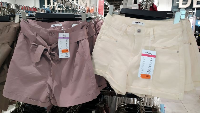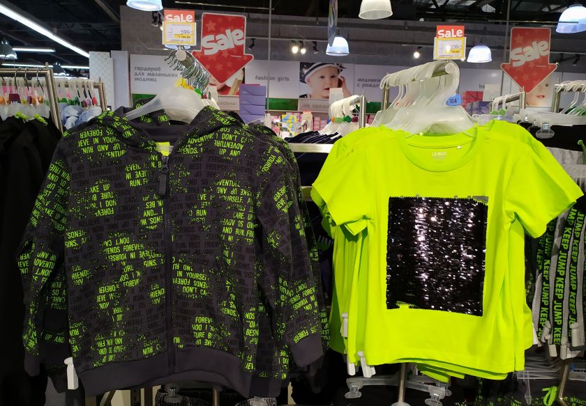 SELA разграблена, в женском отделе осталось то, что подороже, и размеров нет. Тренировочные штаны – 799 руб., их много. В детском отделе ещё достаточно одежды со скидками. Джинсовые шорты – 599 руб., 6-7 лет. Брюки (или бриджи) – 499 руб., 4-7 лет. Пижамы с шортами – 399 руб., дошкольные. Рубашки для мальчиков – 499 руб., 8-11 лет.