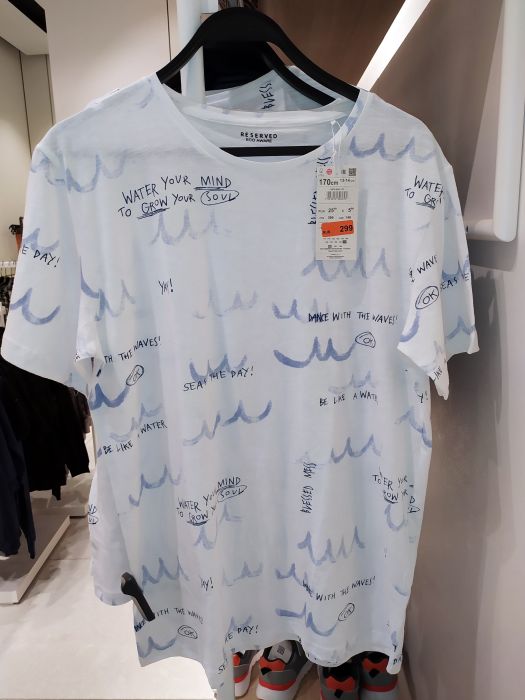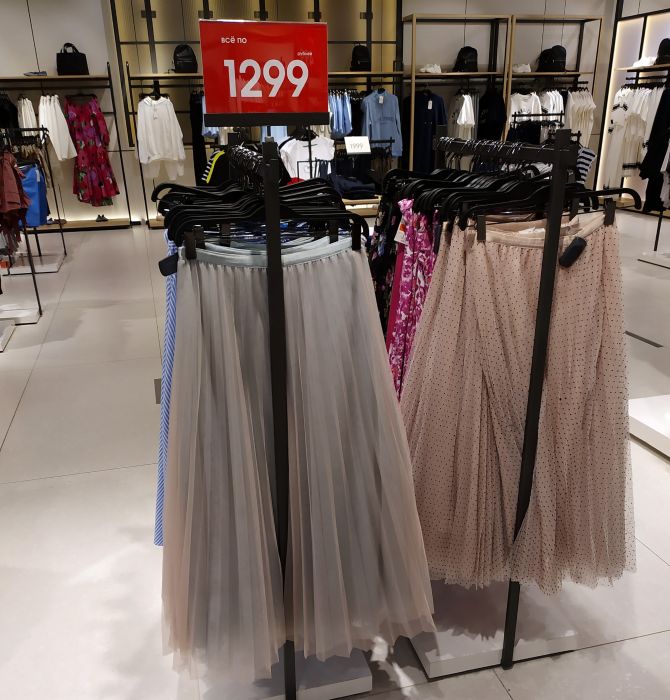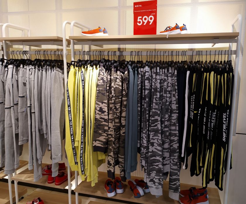 ZARA на следующей неделе наверняка начнёт убирать распродажу в углы, а пока разносортицы много. Рубашки с розами – 999 руб. Тренировочные штаны для подростков – 999 руб., мужские футболки 1299 руб.