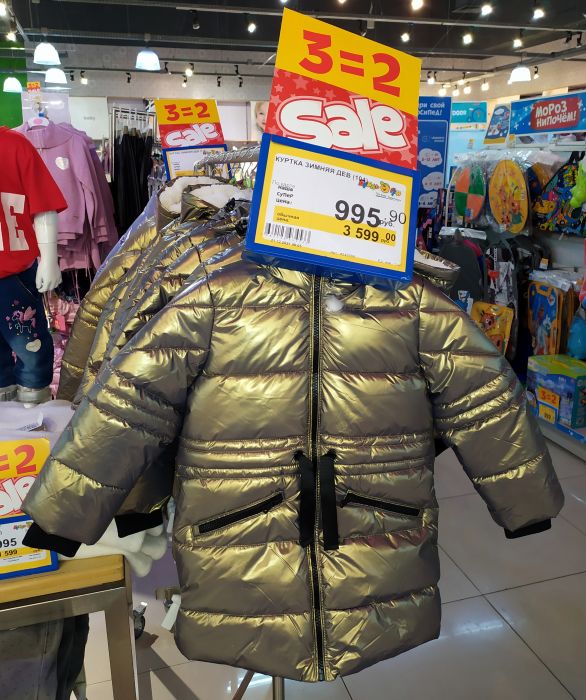 БУБЛЬГУМ свернул акцию на новогодние игрушки, скидки только по карте. Акция 3=2 в отделе одежды продолжается. Зимние пальто, комбинезоны ~1000 руб.