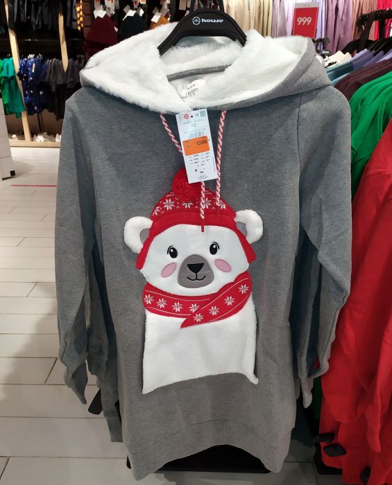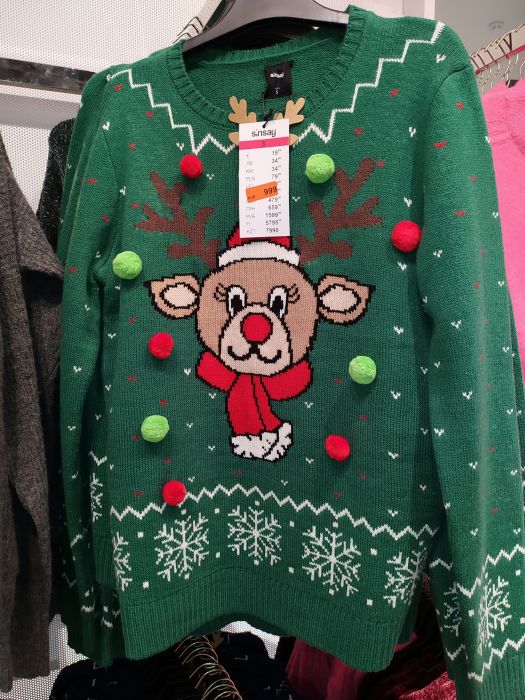 Распродажа в SiNSAY. Здесь можно купить новогодние рубашки и футболки недорого. Шопоголики считают Sinsay самым честным магазином, многим бы поучиться. Продает некачественную одежду на несколько раз – и продаёт дёшево. «Зара» — это выставка трендов, слегка прихваченных нитками на живую. «Котон» в прошлом году проснулся знаменитым (просто без повода) и взвинтил цены, руководствуясь ничем. «Бершка» торгует безумием дорого: мода улиц, мистика, инопланетяне, андеграунд, в моменте и в ресурсе, поэтому пять тысяч за кофту. А Sinsay – бесхитростный, как девушка-соседка. И это редкий магазин, который именно в «Гринвиче» представлен плохо: за ассортиментом лучше поехать в «Алатырь» или «Веер Молл».