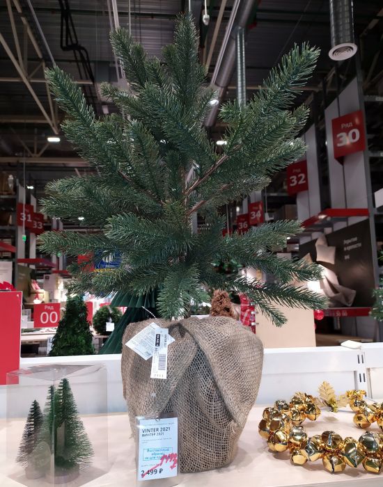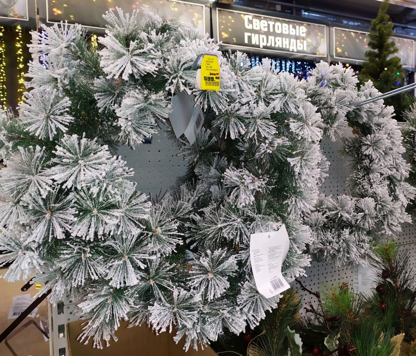 Скидки на новогодний ассортимент в HOFF. Кстати, если кто ждал – он открылся в «Веер Молле»! Немного снижены цены на ёлки: 1,5 метра – 3999 руб., 185 см (под пятым номером) – 2999 руб.