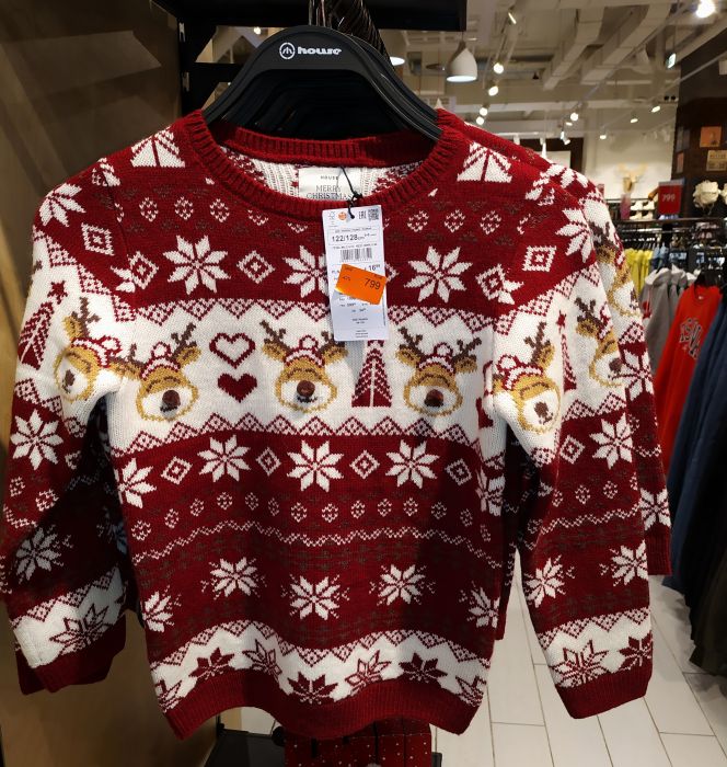 …Вот и всё, что касается «Меги». Срок годности этого обзора 2–3 дня, потом цены начнут резко меняться. Что нужно покупать на этих распродажах? – пуховики, белье и аксессуары. Если вы человек со странностями, как шопоголики на охоте, любящие шастать по торговым центрам, как в бане с толпой – значит, это предложение для вас. Шапки, перчатки, колготки, носки, бельё, сумки и пуховики с большими скидками стоит покупать именно в конце декабря – в начале января. Повседневная одежда, джинсы и футболки, и так весь год лежат тоннами, их не могут распродать по причине удушающего количества. Если вы не закупились футболками и свитерами с новогодней тематикой, их много в польской сети («Резёрвед», «Сенсей», «Кропп», «Хаус»), также в «Бифри» в мужском отделе по 399, но там с безуминкой. Весь ассортимент удобно отслеживать по сайтам магазинов. Новогодние футболки ищите в магазинах подешевле: более дорогие и качественные бренды выпускают свитеры и джемперы, но не футболки. Европейская традиция – все в новогодних свитерах с лампочками, отопление влетает в копейку! А футболки – это «Сенсей», «Глория Джинс», «Бифри», «Модис», «Планета», «Ашан» и т.д.